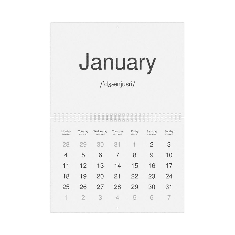 2027 Phonetic Wall Calendar, English-Labeled with IPA, Sunday-Start Layout, Wire-Bound, 11.7 x 8.3 in (29.7 x 21.0 cm)