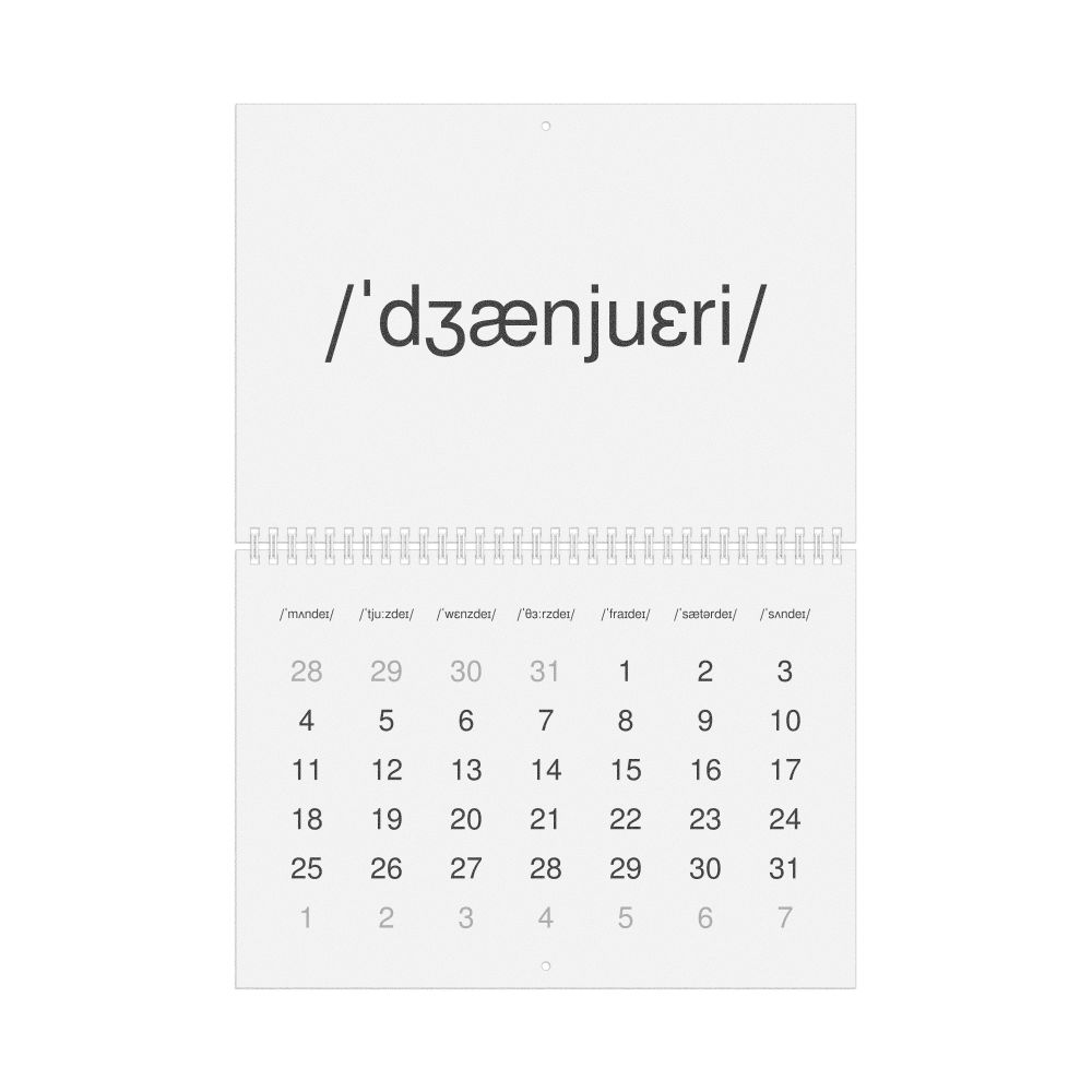 2026 Phonetic Wall Calendar, IPA-Labeled (English), Sunday-Start Layout, Wire-Bound, 11.7 x 8.3 in (29.7 x 21.0 cm)