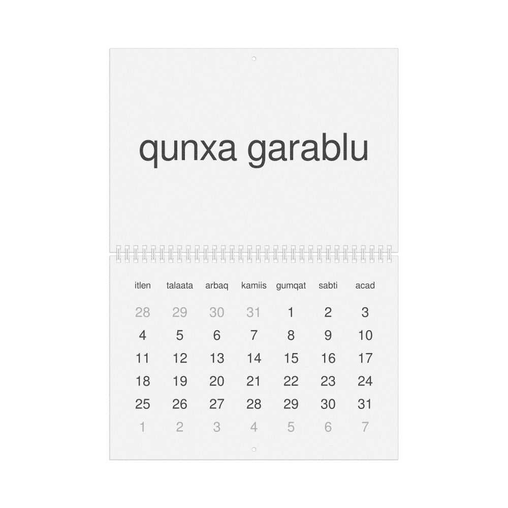 - Afar heritage speakers and cultural connectors - For individuals seeking to maintain a connection to their history, ancestral roots, or the culture associated with the Afar language, the calendar serves as a daily cultural marker. Use it in your home, office, library, or museum as a link to linguistic and cultural identity that integrates Afar into your everyday life. Familiar language script and naming conventions may also provide a sense of home in a foreign environment.