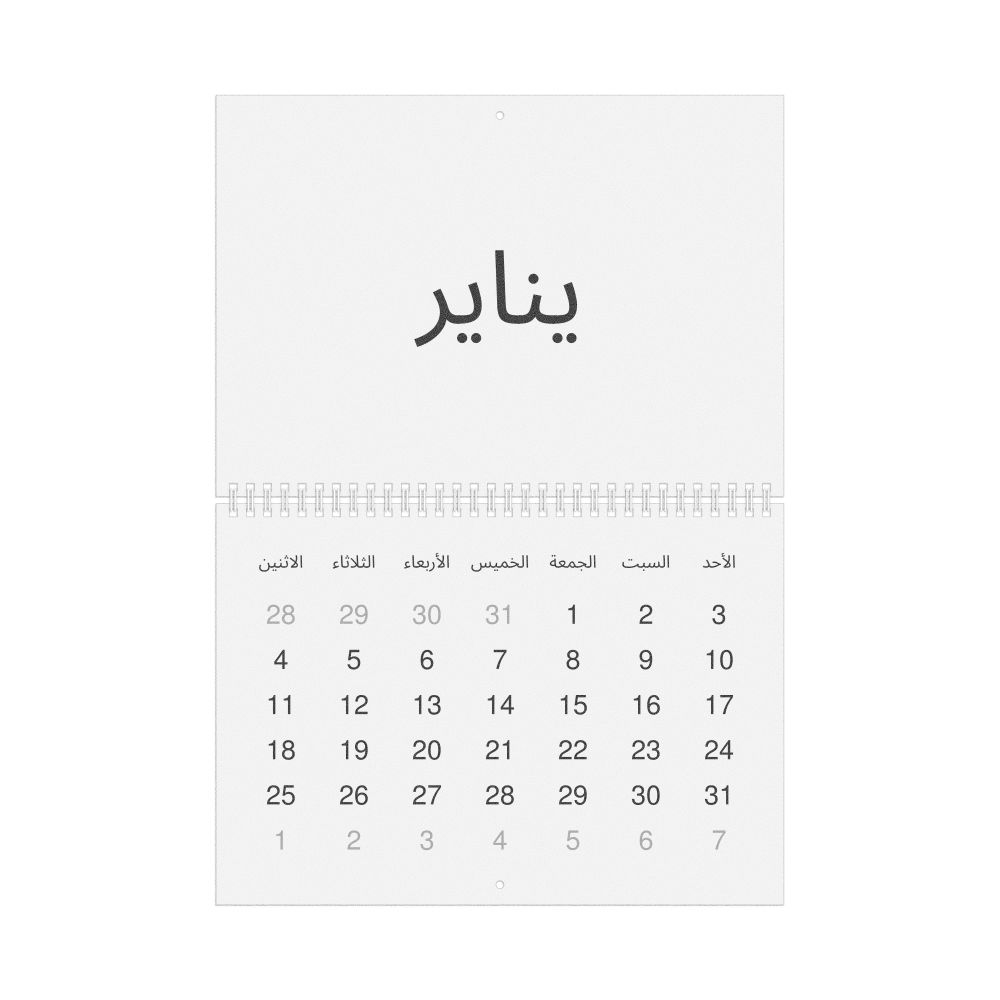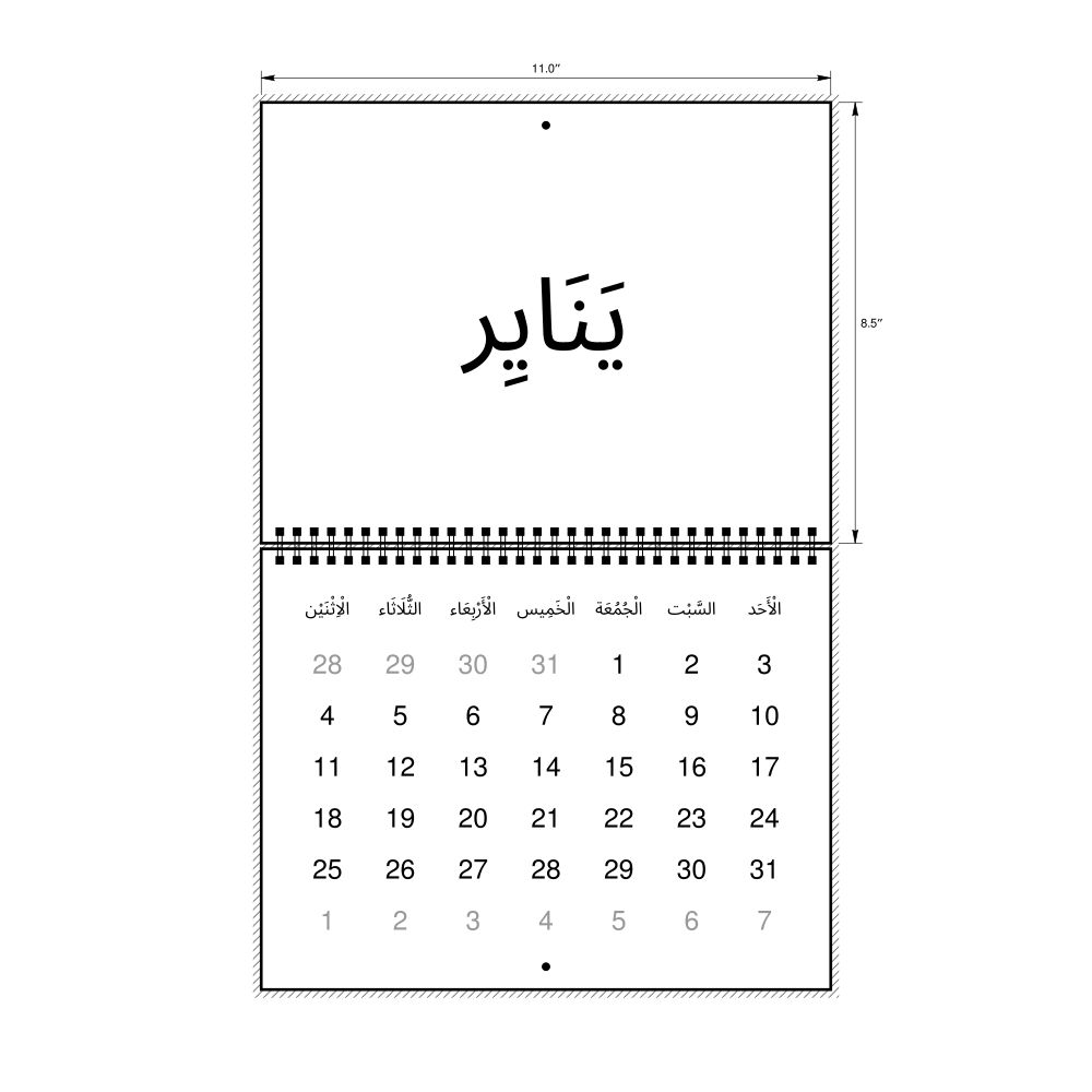 - Arabic heritage speakers and cultural connectors - For individuals seeking to maintain a connection to their history, ancestral roots, or the culture associated with the Arabic language, the calendar serves as a daily cultural marker. Use it in your home, office, library, or museum as a link to linguistic and cultural identity that integrates Arabic into your everyday life. Familiar language script and naming conventions may also provide a sense of home in a foreign environment.