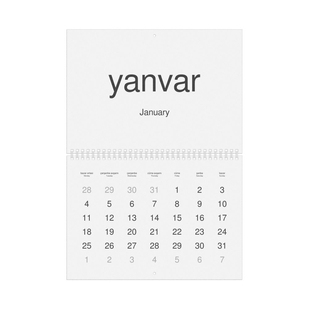 2027 Wall Calendar, Azerbaijani-Labeled, Monday-Start Layout, Wire-Bound, 11.7 x 8.3 in (29.7 x 21.0 cm)