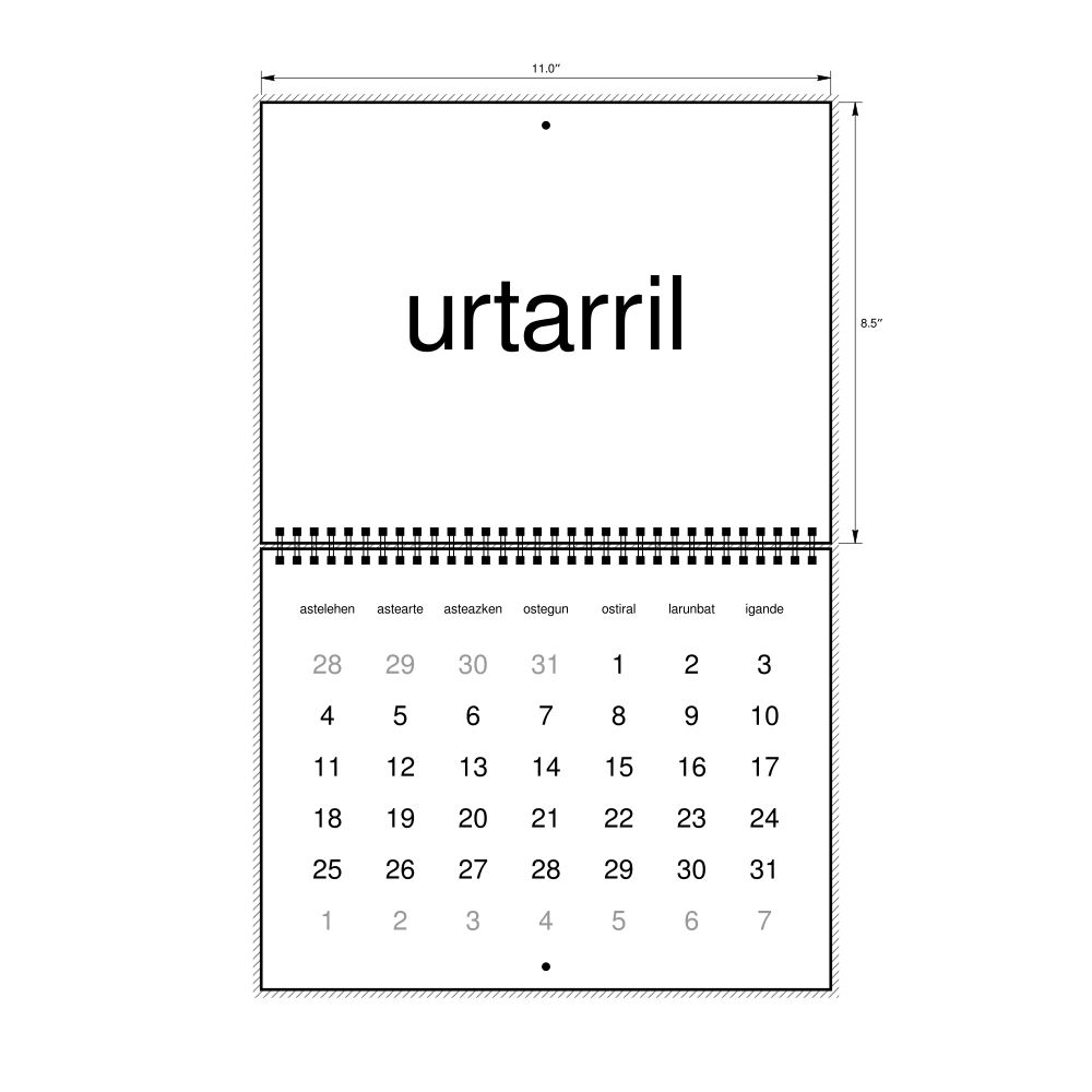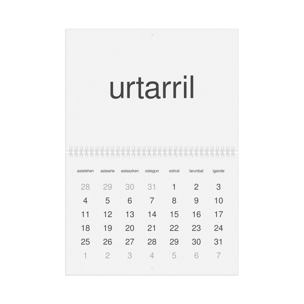 - Basque heritage speakers and cultural connectors - For individuals seeking to maintain a connection to their history, ancestral roots, or the culture associated with the Basque language, the calendar serves as a daily cultural marker. Use it in your home, office, library, or museum as a link to linguistic and cultural identity that integrates Basque into your everyday life. Familiar language script and naming conventions may also provide a sense of home in a foreign environment.