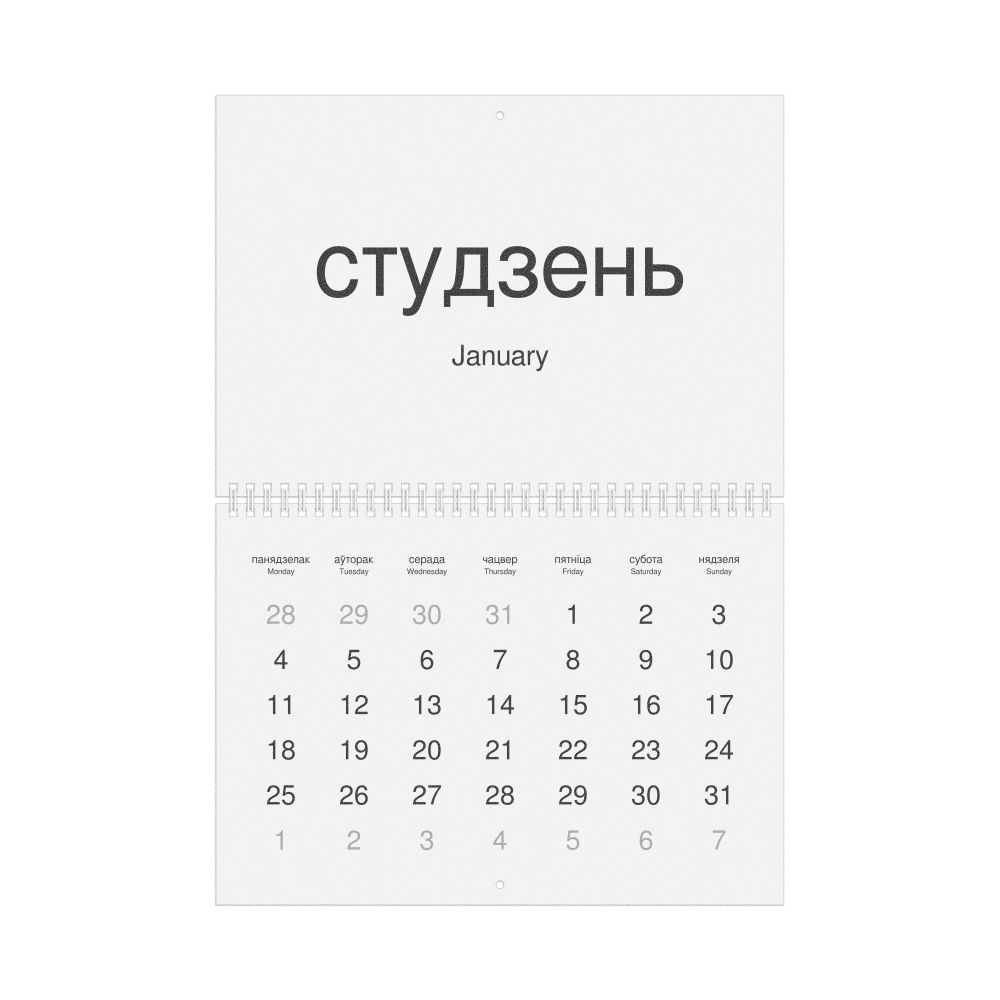 2026 Wall Calendar, Belarusian-Labeled, Sunday-Start Layout, Wire-Bound, 11.7 x 8.3 in (29.7 x 21.0 cm)