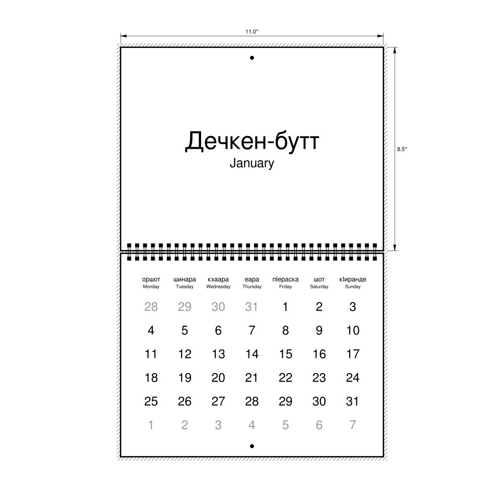 2027 Wall CalendarChechen/English-Labeled, Monday-Start Layout, Wire-Bound, 11 x 8.5 in (27.9 x 21.6 cm)