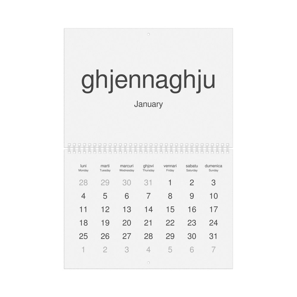 2026 Wall Calendar, Corsican/English-Labeled, Monday-Start Layout, Wire-Bound, 11.7 x 8.3 in (29.7 x 21.0 cm)