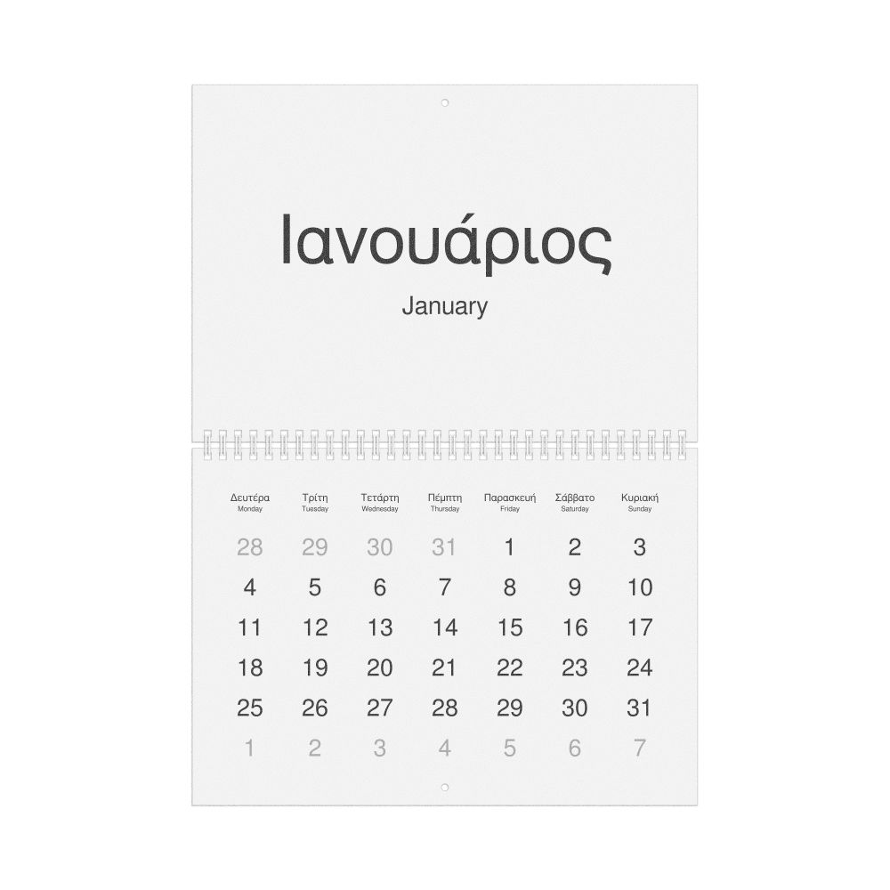 2026 Wall Calendar, Greek-Labeled, Sunday-Start Layout, Wire-Bound, 11.7 x 8.3 in (29.7 x 21.0 cm)