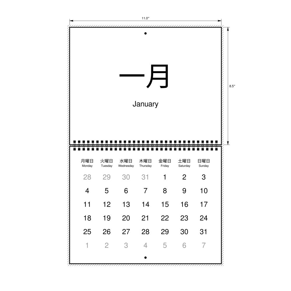 2027 Wall CalendarJapanese/English-Labeled, Monday-Start Layout, Wire-Bound, 11 x 8.5 in (27.9 x 21.6 cm)
