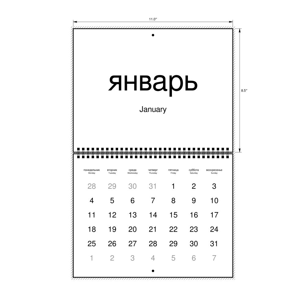 2027 Wall CalendarRussian/English-Labeled, Monday-Start Layout, Wire-Bound, 11 x 8.5 in (27.9 x 21.6 cm)
