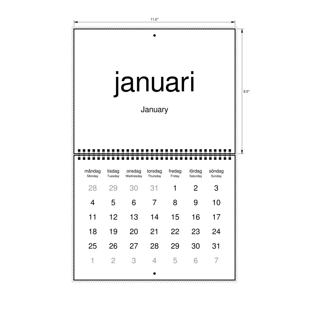 2027 Wall CalendarSwedish/English-Labeled, Monday-Start Layout, Wire-Bound, 11 x 8.5 in (27.9 x 21.6 cm)