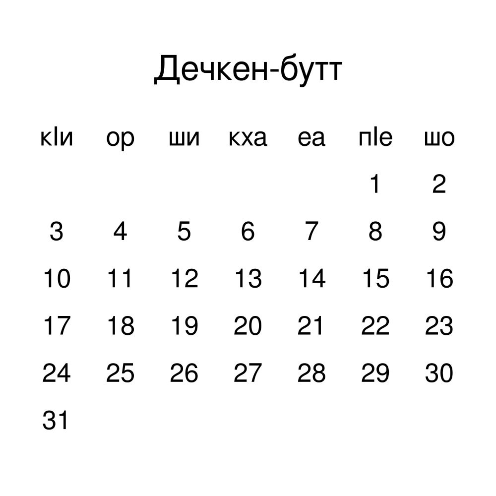 This calendar features the Chechen names of months and days of the week on top of a standard Gregorian calendar layout. Beyond its utility for tracking dates, it serves as an educational tool, cultural touchstone (cultural artifact), and functional decor (aesthetic object).