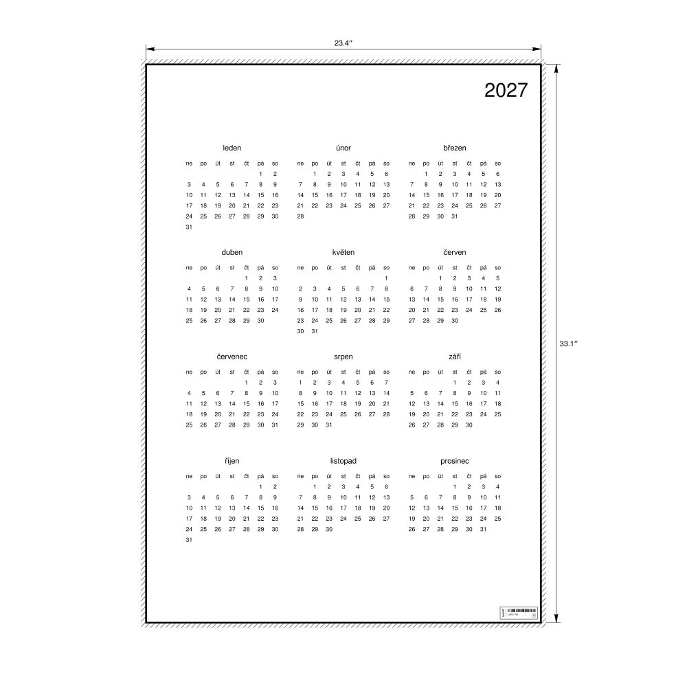 2027 Wall Calendar, Czech-Labeled, Sunday-Start Layout, Poster / Wall Print, 23.4 x 33.1 in (59.4 x 84.1 cm)