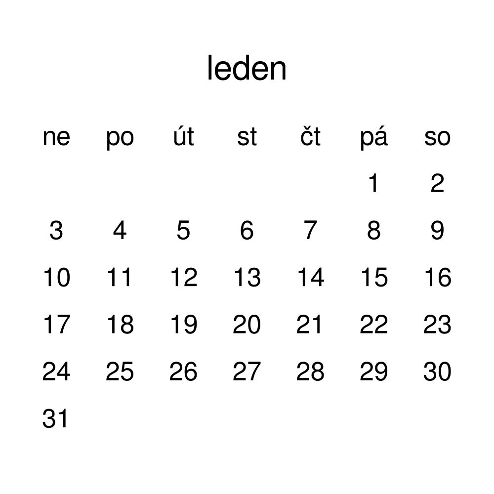 This calendar features the Czech names of months and days of the week on top of a standard Gregorian calendar layout. Beyond its utility for tracking dates, it serves as an educational tool, cultural touchstone (cultural artifact), and functional decor (aesthetic object).