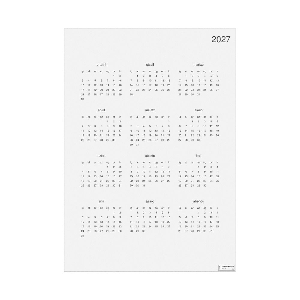 - Linguistics enthusiasts and polyglots - For "language geeks" interested in comparative linguistics or the mechanics of different languages and who value the aesthetic differences in scripts, orthography, and typography of different languages, the Basque calendar serves as an object of intellectual interest. You can collect calendars for various languages to compare their linguistic roots (e.g., comparing Romance languages vs. Slavic languages). Leskoff's calendars are characterized by specific typographic choices that highlight the orthography and script unique to the target language. Think correct usage of diacritics, characters, and directional writing (left-to-right vs. right-to-left). The minimalist design focuses on legibility and aesthetic appeal of the script itself.