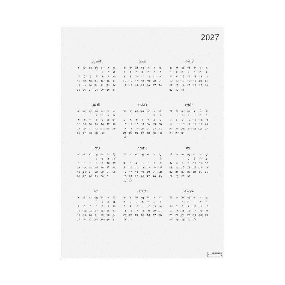 - Basque heritage speakers and cultural connectors - For individuals seeking to maintain a connection to their history, ancestral roots, or the culture associated with the Basque language, the calendar serves as a daily cultural marker. Use it in your home, office, library, or museum as a link to linguistic and cultural identity that integrates Basque into your everyday life. Familiar language script and naming conventions may also provide a sense of home in a foreign environment.