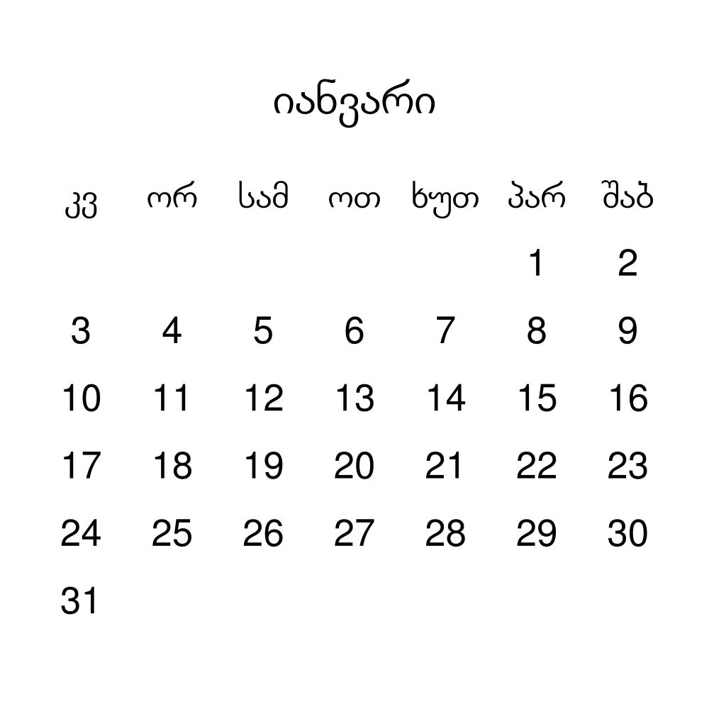 • Georgian speakers and enthusiasts - Choose this calendar if you are looking for a simple, localized calendar in the Georgian language. Use it in your home, office, or classroom as a regular calendar.