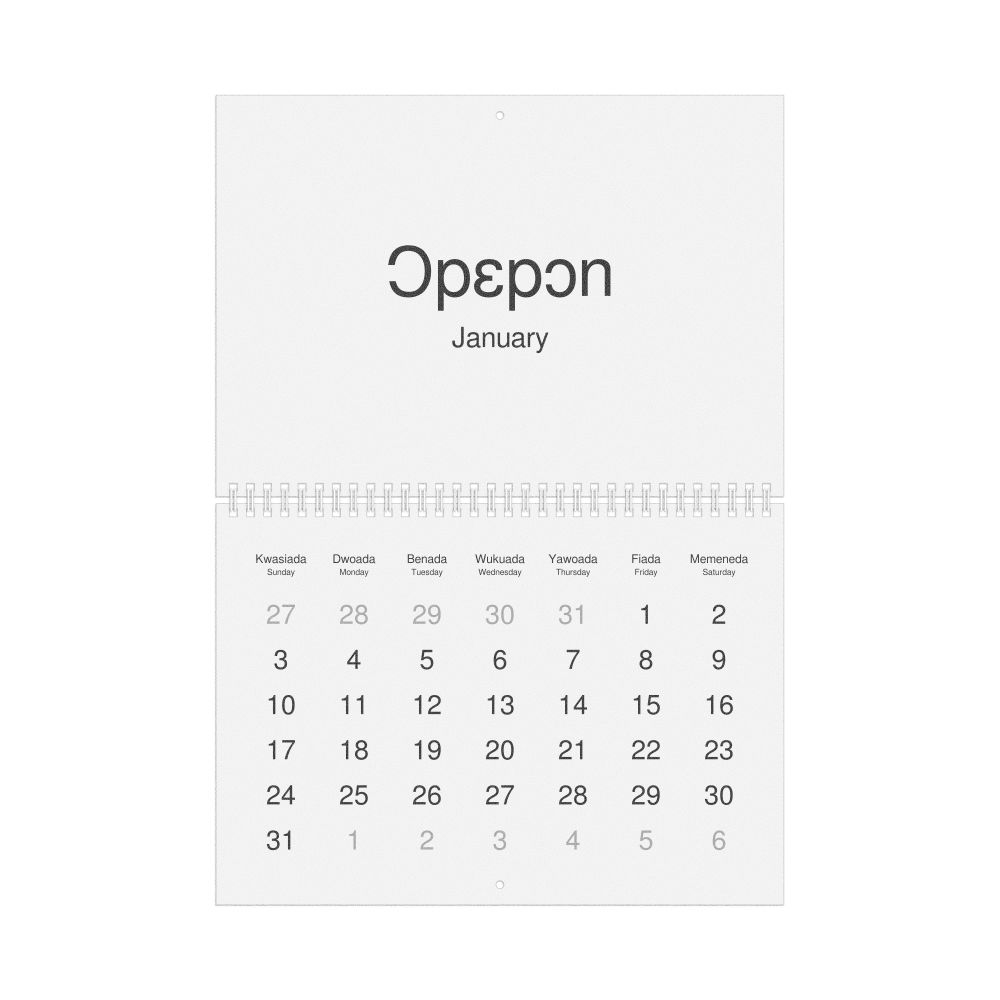 2026 Wall Calendar, Akan/English-Labeled, Sunday-Start Layout, Wire-Bound, 11.7 x 8.3 in (29.7 x 21.0 cm)