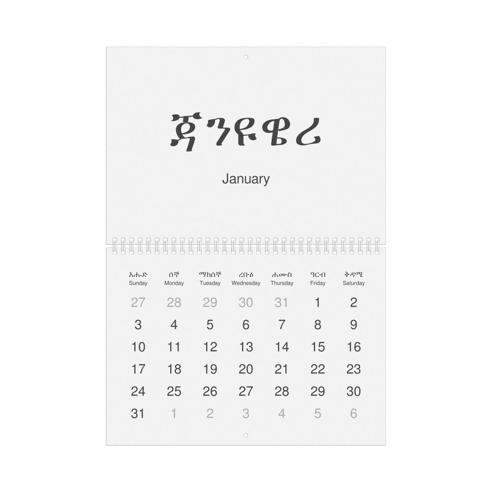 2027 Wall Calendar, Amharic/English-Labeled, Monday-Start Layout, Wire-Bound, 11.7 x 8.3 in (29.7 x 21.0 cm)