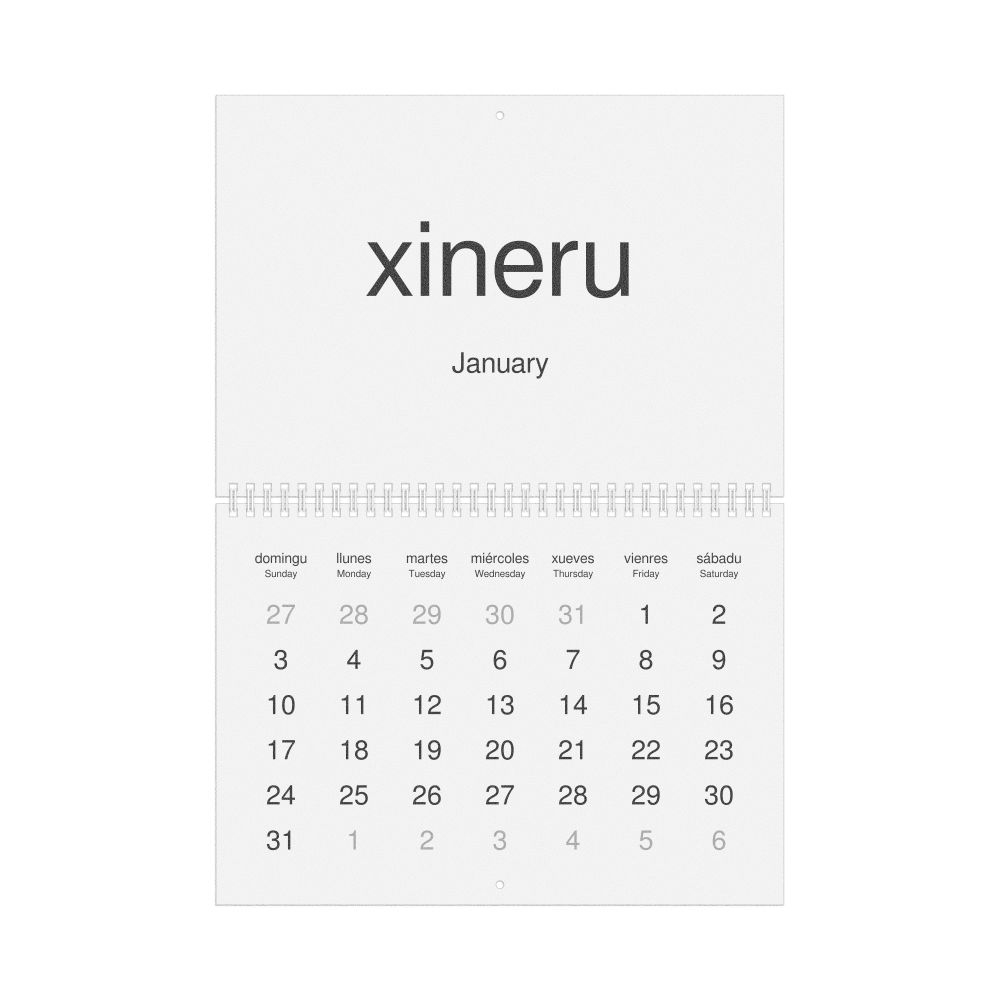 2026 Wall Calendar, Asturian-Labeled, Sunday-Start Layout, Poster / Wall Print, 23.4 x 33.1 in (59.4 x 84.1 cm)