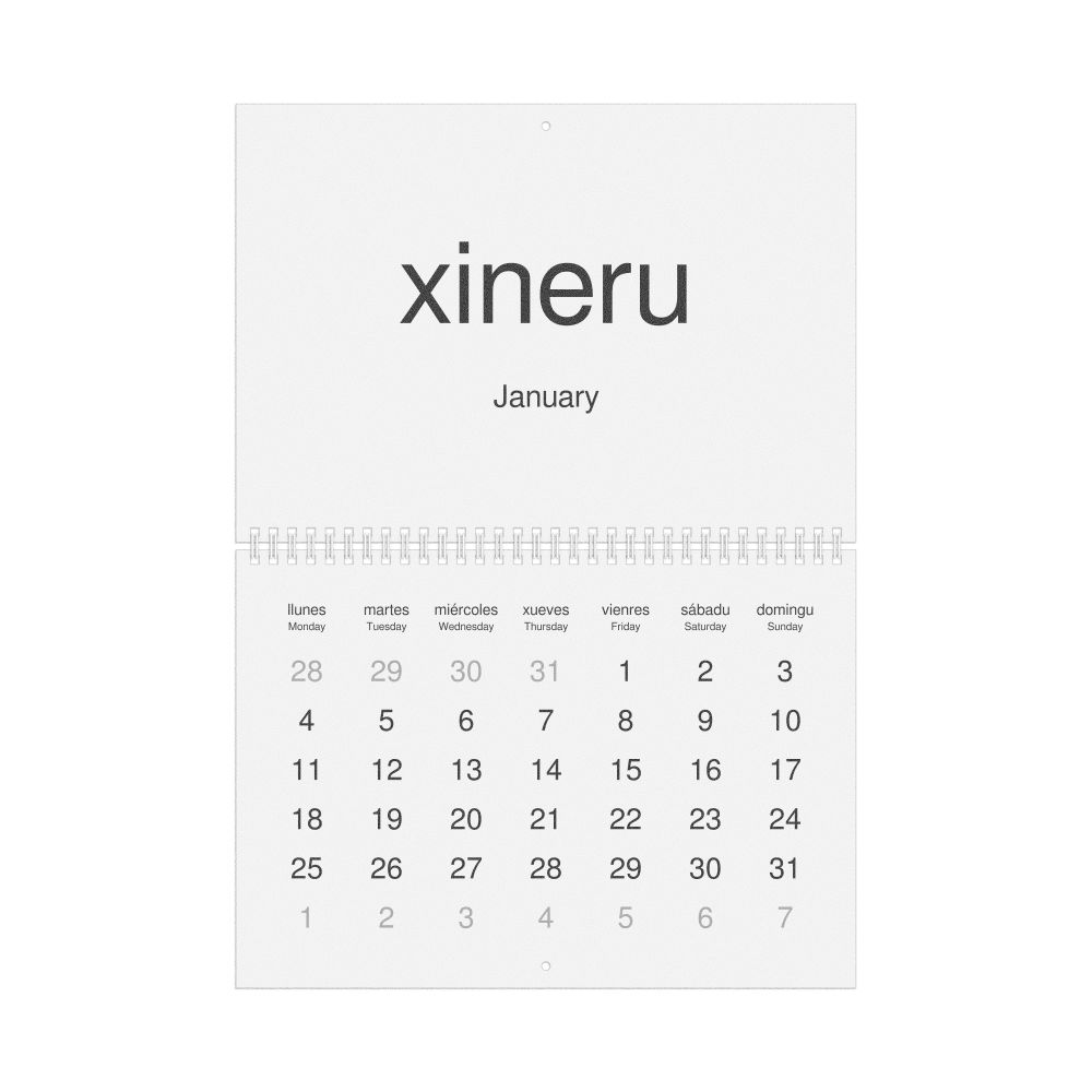 2027 Wall Calendar, Asturian-Labeled, Sunday-Start Layout, Wire-Bound, 11.7 x 8.3 in (29.7 x 21.0 cm)