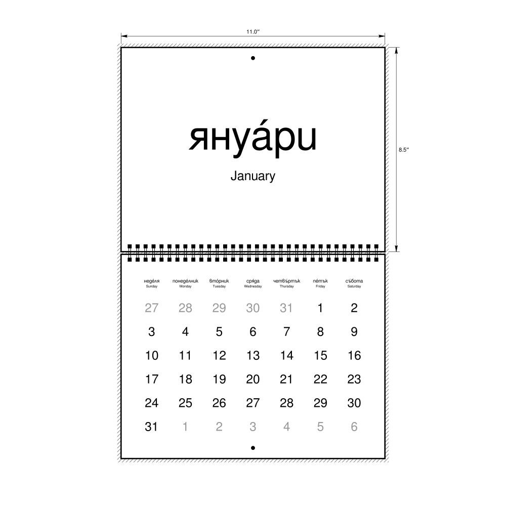 2027 Wall CalendarBulgarian/English-Labeled, Sunday-Start Layout, Wire-Bound, 11 x 8.5 in (27.9 x 21.6 cm)