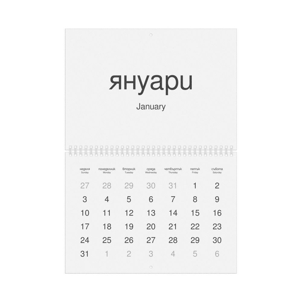 2027 Wall Calendar, Bulgarian-Labeled, Sunday-Start Layout, Wire-Bound, 11.7 x 8.3 in (29.7 x 21.0 cm)