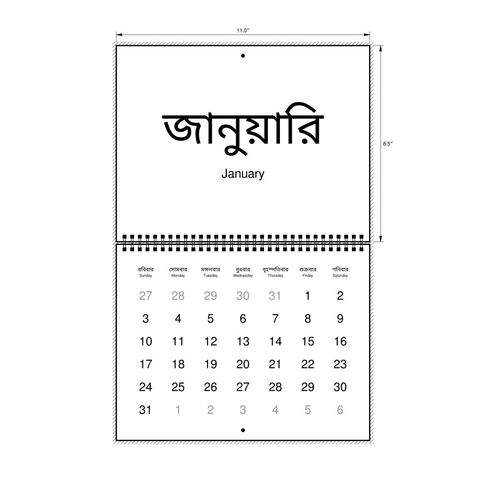 2027 Wall CalendarBengali/English-Labeled, Sunday-Start Layout, Wire-Bound, 11 x 8.5 in (27.9 x 21.6 cm)