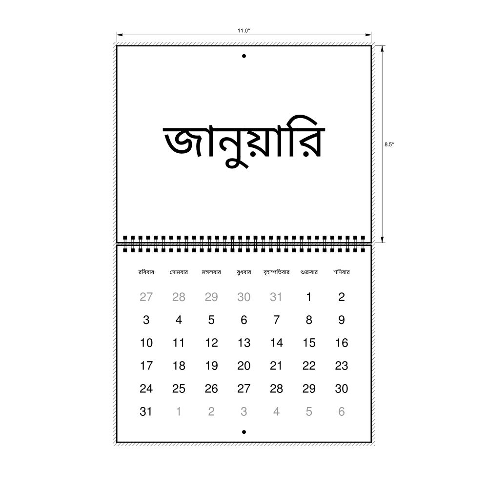 2027 Wall Calendar, Bengali-Labeled, Sunday-Start Layout, Wire-Bound, 11 x 8.5 in (27.9 x 21.6 cm)