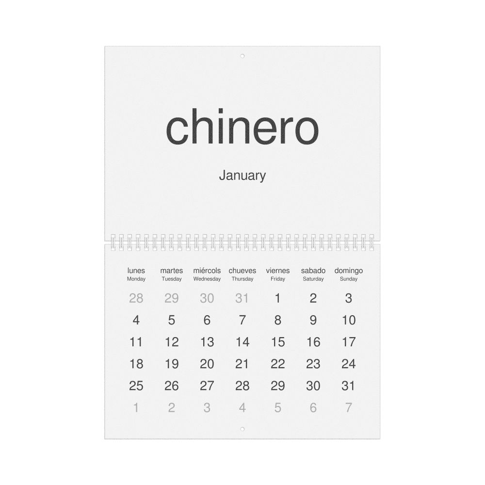 2027 Wall Calendar, Aragonese/English-Labeled, Sunday-Start Layout, Wire-Bound, 11.7 x 8.3 in (29.7 x 21.0 cm)