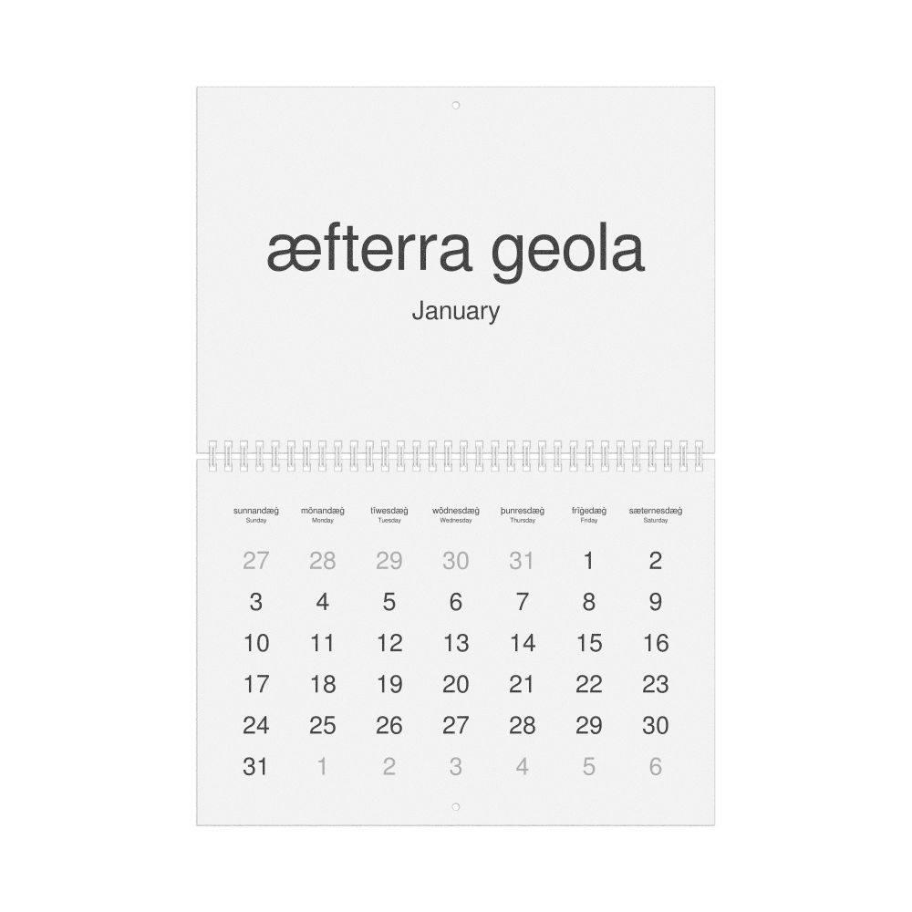 - Polyglots and autodidacts - For "language geeks" interested in the origins of different languages, classical literature, and scholarly pursuits and who value the typographic and aesthetic details of historical languages, the Old English calendar serves as an object of intellectual interest. You can collect calendars for various languages to compare their linguistic roots. The minimalist design focuses on legibility and aesthetic appeal of the historic and reconstructed words themselves.