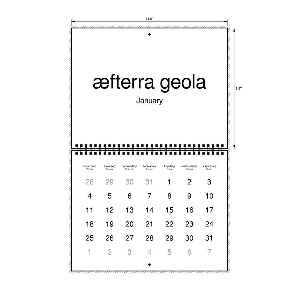 - Polyglots and autodidacts - For "language geeks" interested in the origins of different languages, classical literature, and scholarly pursuits and who value the typographic and aesthetic details of historical languages, the Old English calendar serves as an object of intellectual interest. You can collect calendars for various languages to compare their linguistic roots. The minimalist design focuses on legibility and aesthetic appeal of the historic and reconstructed words themselves.