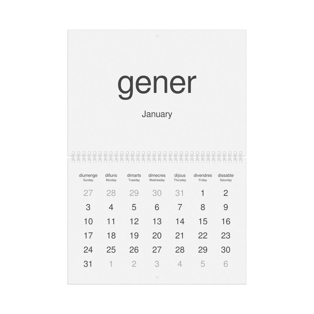 2027 Wall Calendar, Catalan-Labeled, Sunday-Start Layout, Wire-Bound, 11.7 x 8.3 in (29.7 x 21.0 cm)