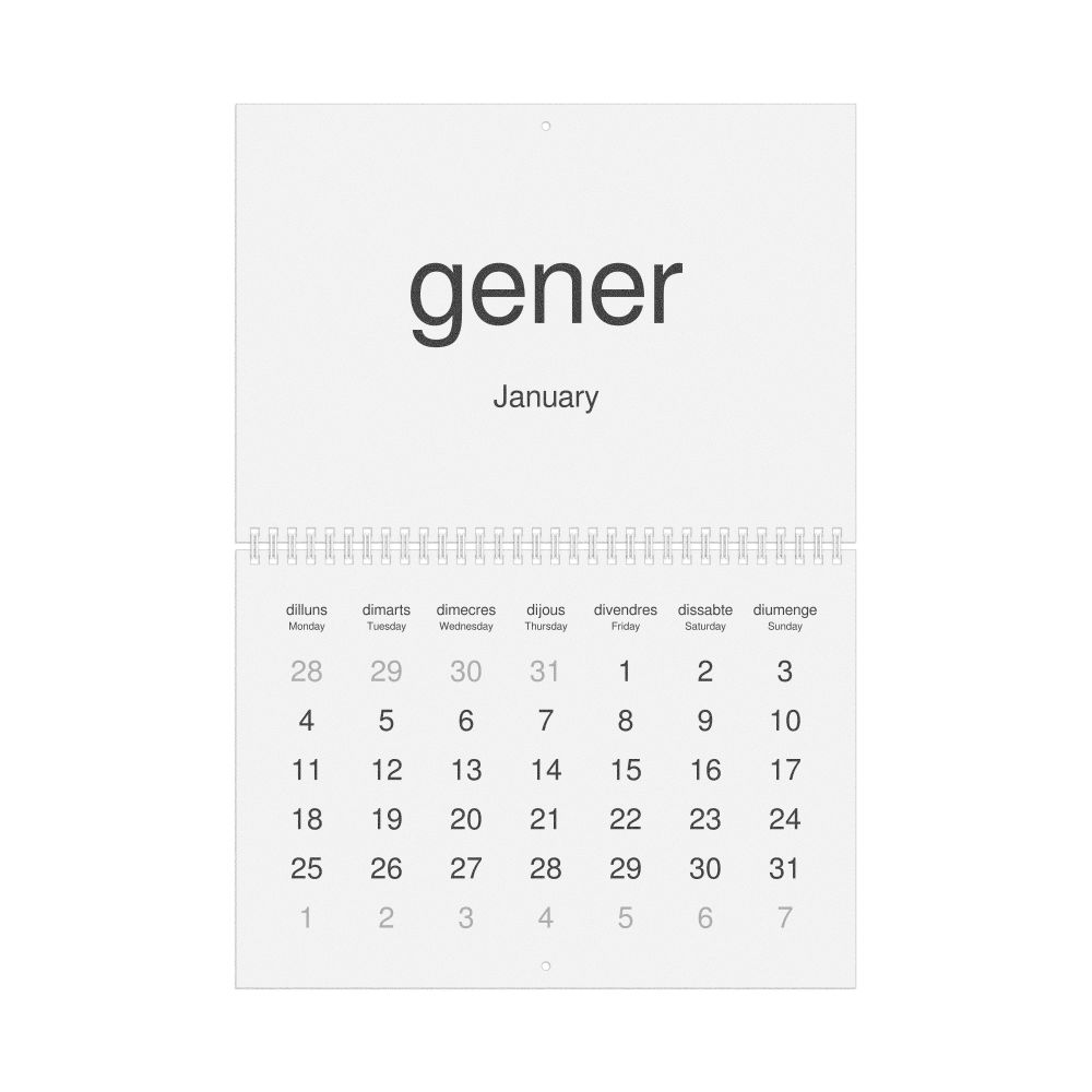 2027 Wall Calendar, Catalan-Labeled, Sunday-Start Layout, Wire-Bound, 11.7 x 8.3 in (29.7 x 21.0 cm)