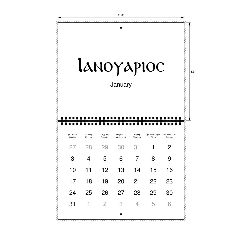2027 Wall CalendarCoptic/English-Labeled, Sunday-Start Layout, Wire-Bound, 11 x 8.5 in (27.9 x 21.6 cm)