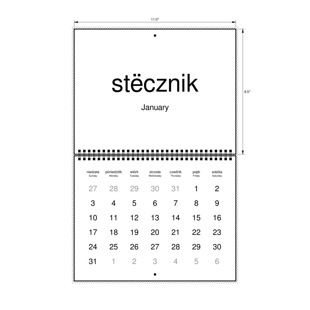 2027 Wall CalendarKashubian/English-Labeled, Sunday-Start Layout, Wire-Bound, 11 x 8.5 in (27.9 x 21.6 cm)