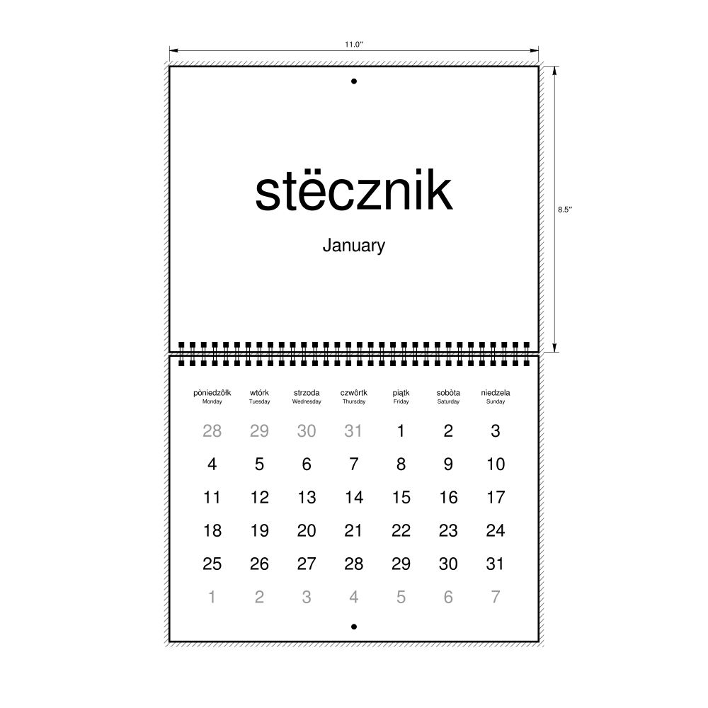 2027 Wall CalendarKashubian/English-Labeled, Monday-Start Layout, Wire-Bound, 11 x 8.5 in (27.9 x 21.6 cm)