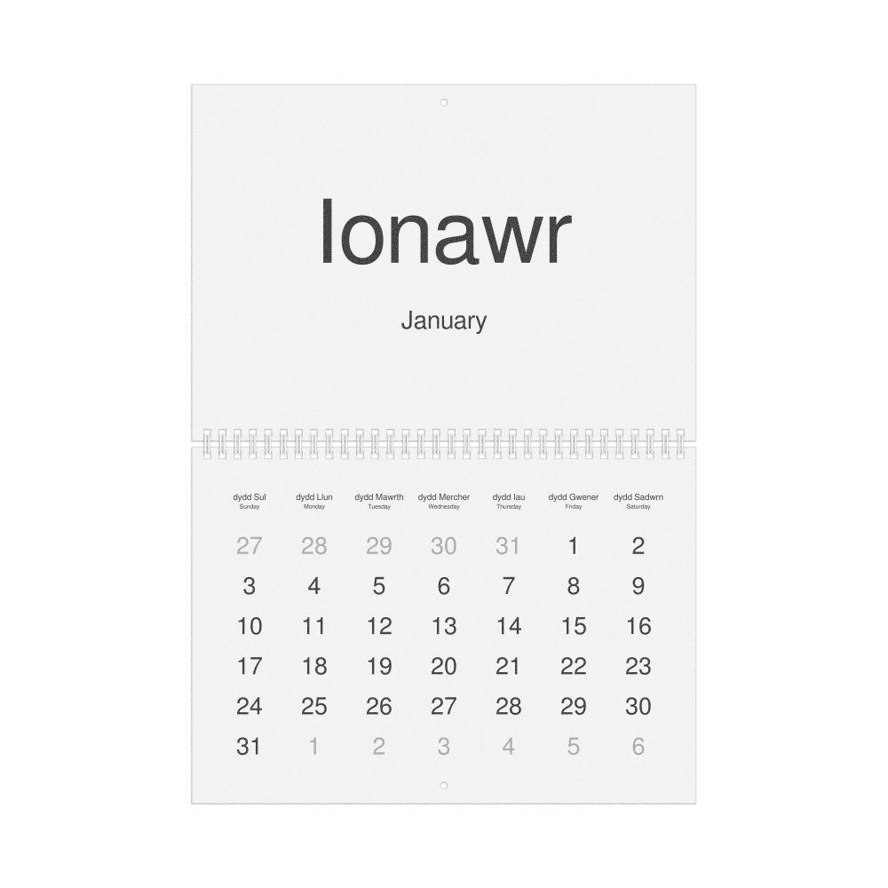 2026 Wall Calendar, Welsh/English-Labeled, Monday-Start Layout, Wire-Bound, 11.7 x 8.3 in (29.7 x 21.0 cm)