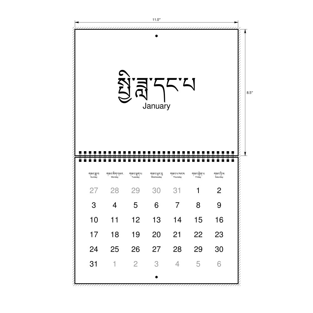 2027 Wall CalendarDzongkha/English-Labeled, Sunday-Start Layout, Wire-Bound, 11 x 8.5 in (27.9 x 21.6 cm)