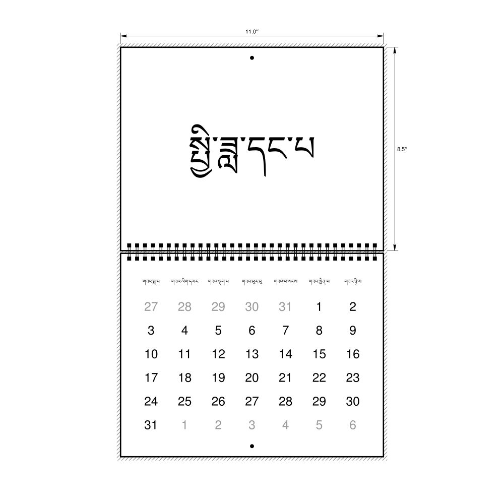 2027 Wall Calendar, Dzongkha-Labeled, Sunday-Start Layout, Wire-Bound, 11 x 8.5 in (27.9 x 21.6 cm)
