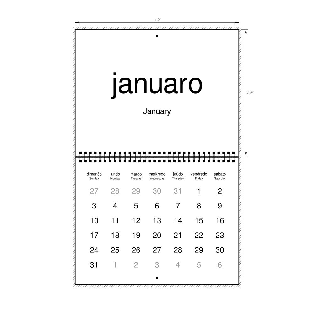 2027 Wall CalendarEsperanto/English-Labeled, Sunday-Start Layout, Wire-Bound, 11 x 8.5 in (27.9 x 21.6 cm)