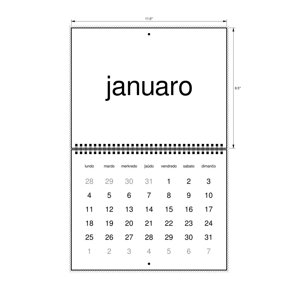 2027 Wall CalendarEsperanto-Labeled, Monday-Start Layout, Wire-Bound, 11 x 8.5 in (27.9 x 21.6 cm)