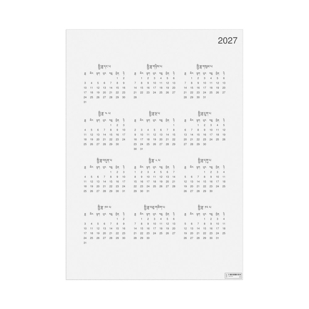Leskoff 2027 Wall Calendar, Dzongkha-Labeled, Sunday-Start Layout, Poster / Wall Print, 23.4 x 33.1 in (59.4 x 84.1 cm), image 1 of 1