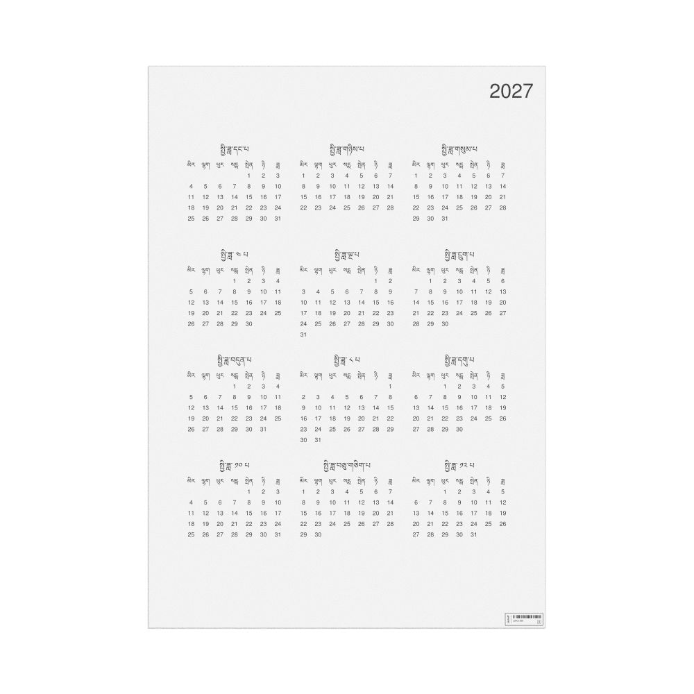 2027 Wall Calendar, Dzongkha-Labeled, Sunday-Start Layout, Poster / Wall Print, 23.4 x 33.1 in (59.4 x 84.1 cm)