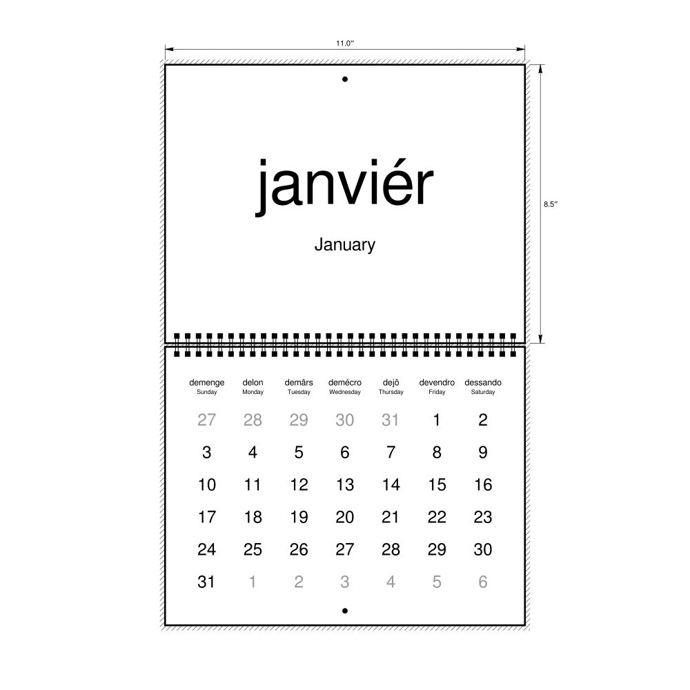 2027 Wall CalendarFranco-Provençal/English-Labeled, Sunday-Start Layout, Wire-Bound, 11 x 8.5 in (27.9 x 21.6 cm)