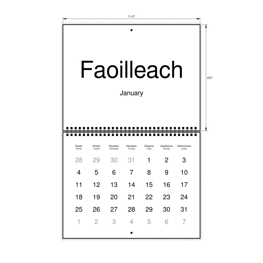 2027 Wall CalendarScottish Gaelic/English-Labeled, Monday-Start Layout, Wire-Bound, 11 x 8.5 in (27.9 x 21.6 cm)