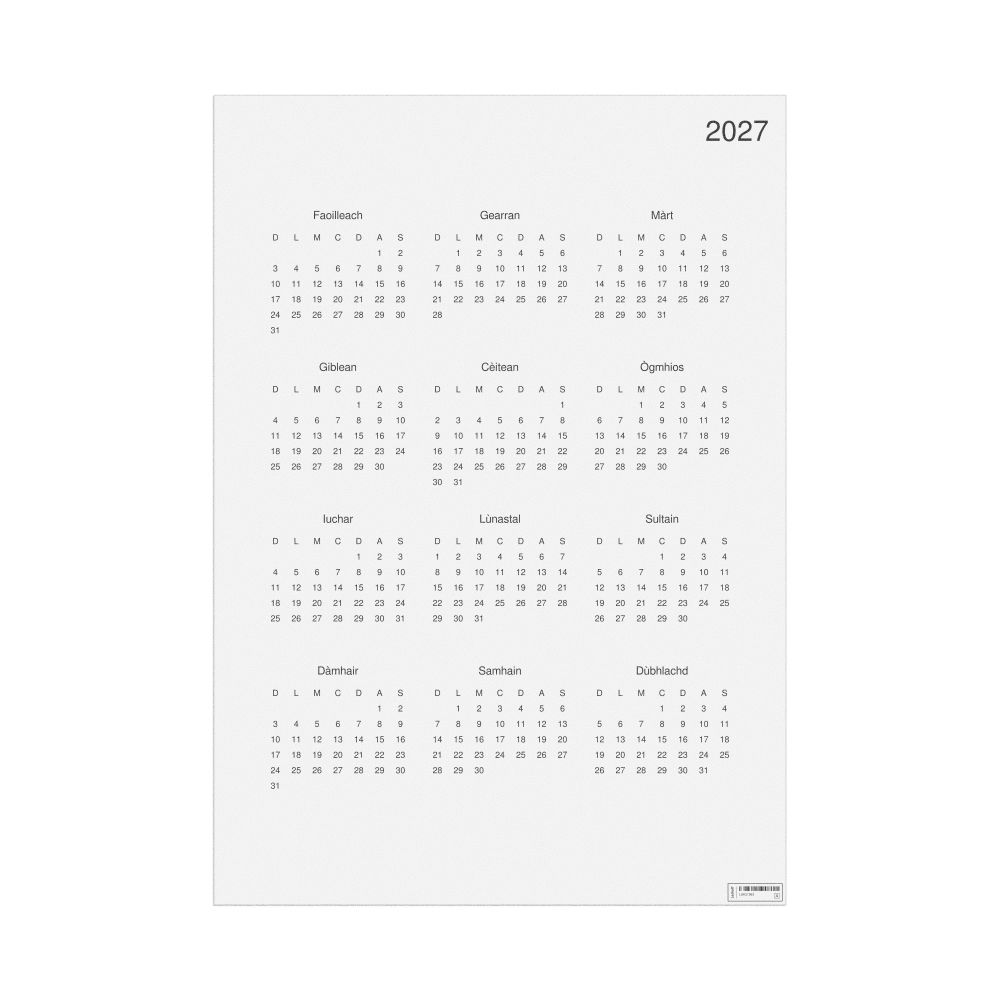 A 2027 wall calendar in Scottish Gaelic. The calendar uses the Sunday-start week format (common in the US and Canada).