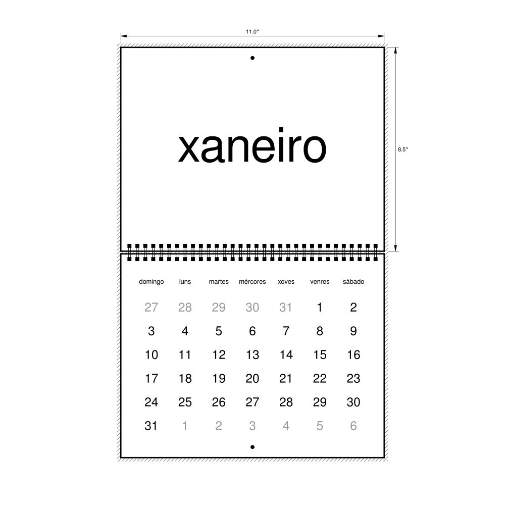 2027 Wall Calendar, Galician-Labeled, Sunday-Start Layout, Wire-Bound, 11 x 8.5 in (27.9 x 21.6 cm)