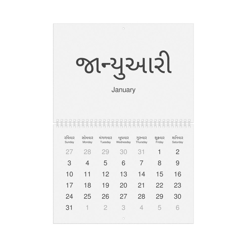 2027 Wall Calendar, Gujarati-Labeled, Monday-Start Layout, Wire-Bound, 11.7 x 8.3 in (29.7 x 21.0 cm)