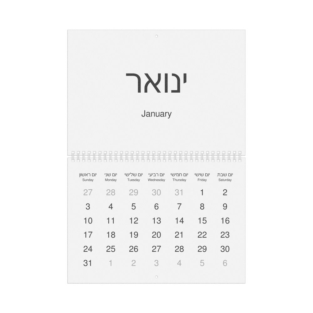 2027 Wall Calendar, Hebrew/English-Labeled, Monday-Start Layout, Wire-Bound, 11.7 x 8.3 in (29.7 x 21.0 cm)