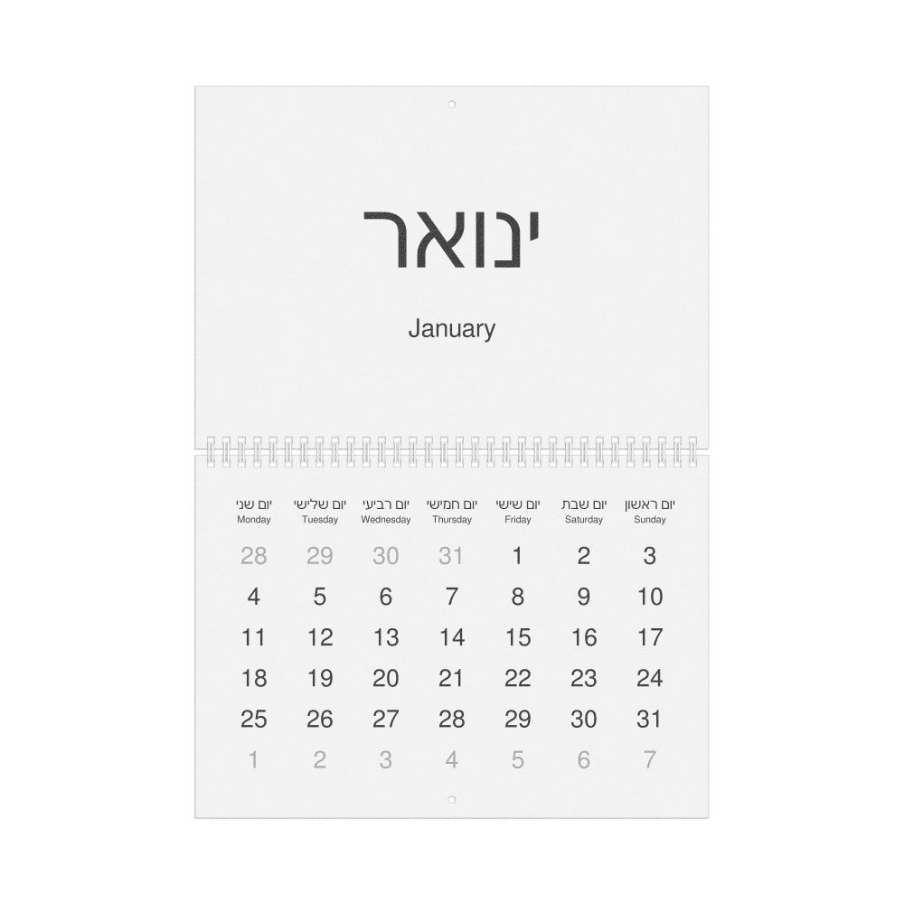 2026 Wall Calendar, Hebrew-Labeled, Monday-Start Layout, Wire-Bound, 11.7 x 8.3 in (29.7 x 21.0 cm)
