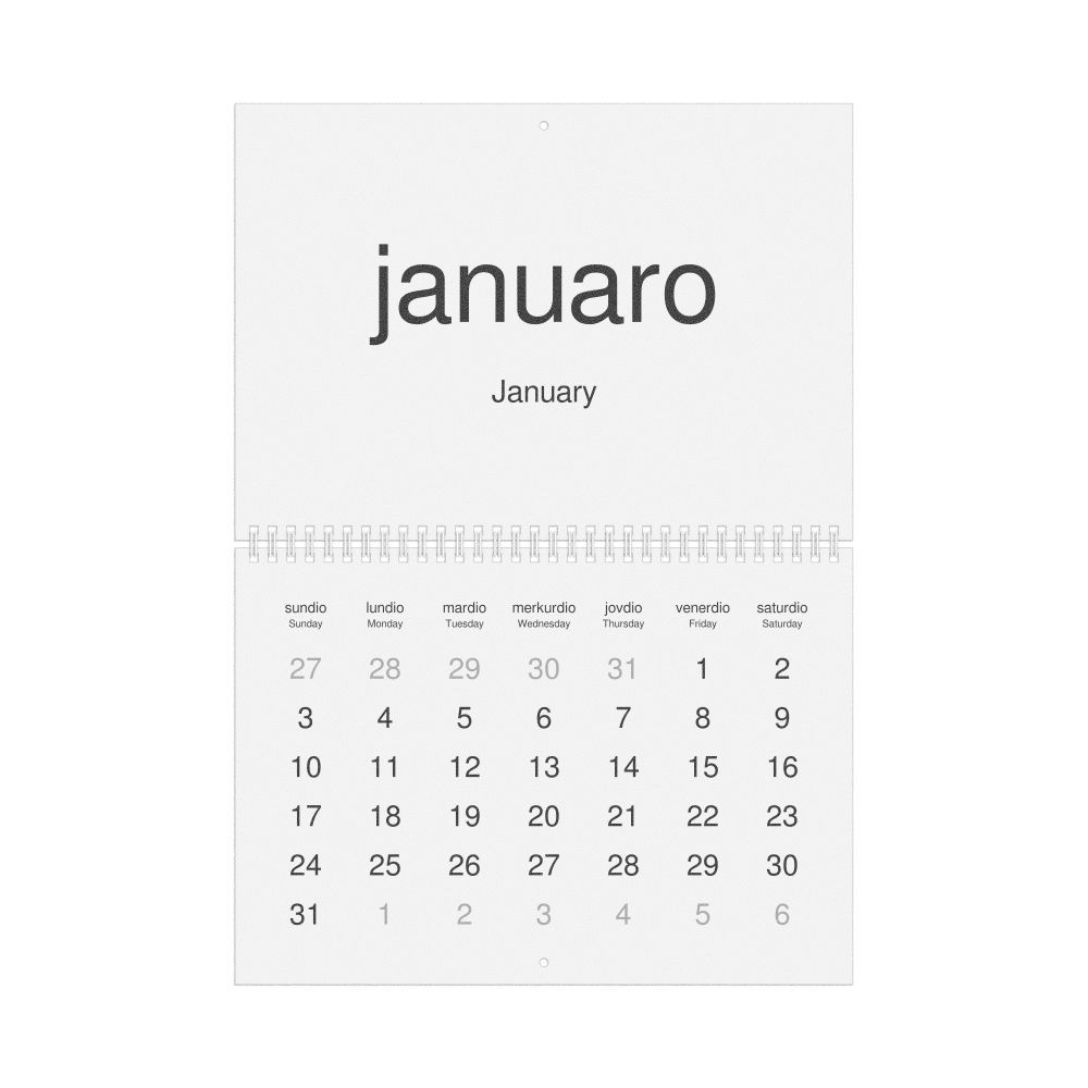 An Ido wall calendar (2027, Sunday-start format) with English translations.